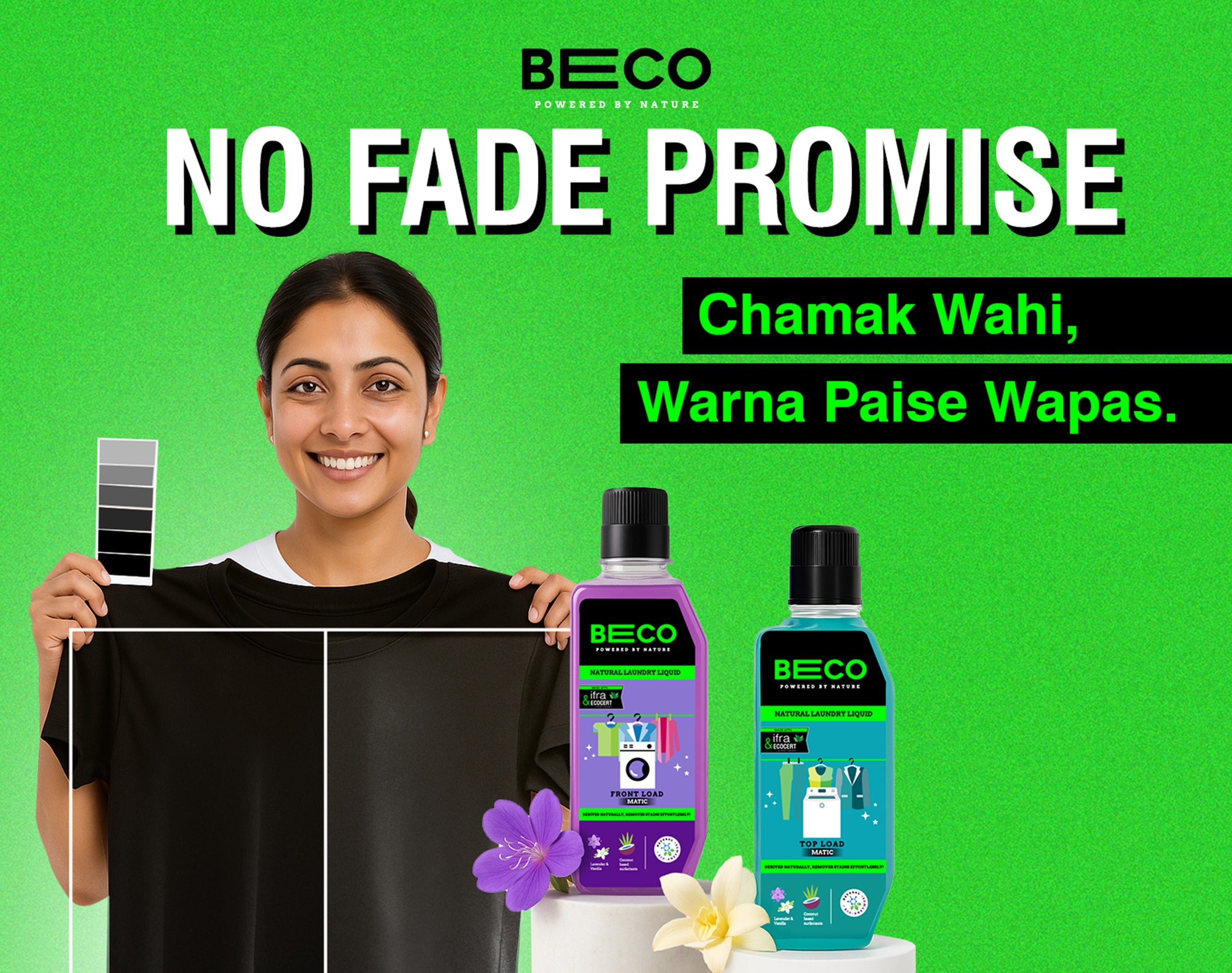 Most clothes begin to fade after just 7 washes with ordinary detergents. We want you to test Beco for longer, so you can see the difference.